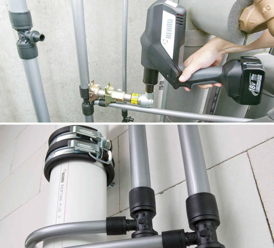 Cevni sistem Rehau, obstojen v vroči vodi, odporen proti kemikalijam in koroziji. Možnost uporabe kot centralni sesalni vod vključno s številnimi dodatnimi artikli.